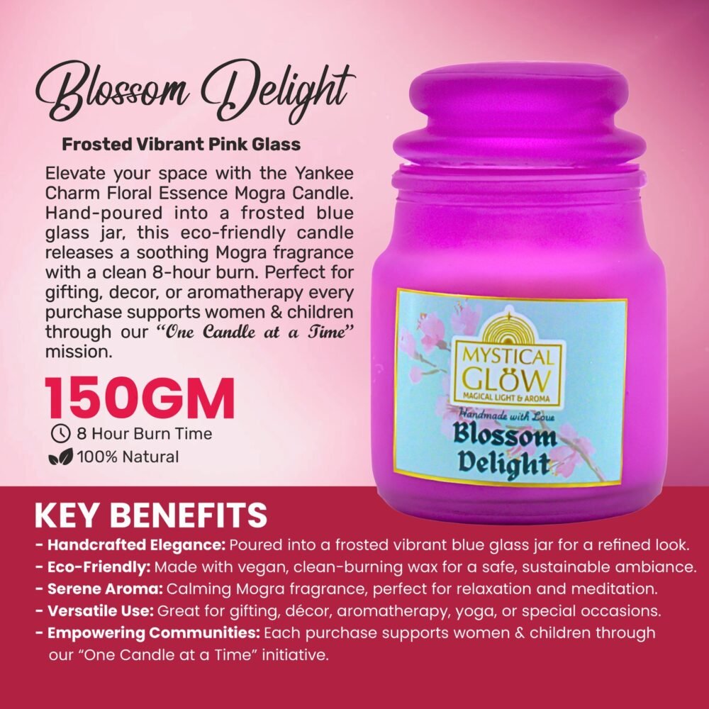 As the flame settles, picture blooming champa flowers in ancient temple gardens, their essence mingling with sandalwood trails, a scent synonymous with Indian spirituality that invites quiet reflection. In the varied rhythms of city life—from Gandhinagar’s planned tranquility to Mumbai’s bustle—this floral jar candle provides a consistent sanctuary, its aroma lingering softly to support mindful transitions from work to worship. Whether during monsoon meditations or festival preparations, it fosters a sense of continuity, bridging tradition with modern living while adhering to simple care for enduring enjoyment.